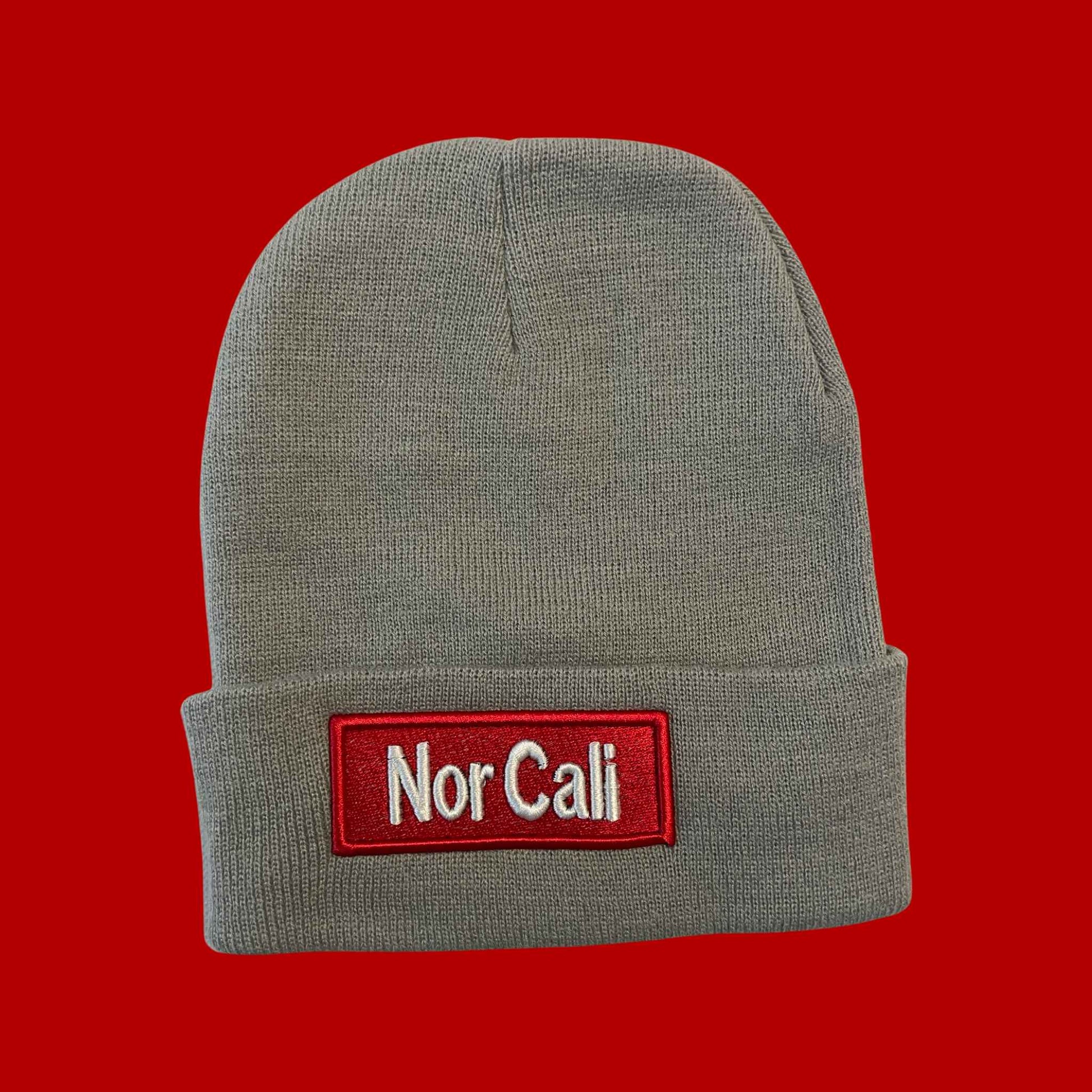 "Nor Cali" Grey, Red/White Lettering Embroidered, Beanie Cap