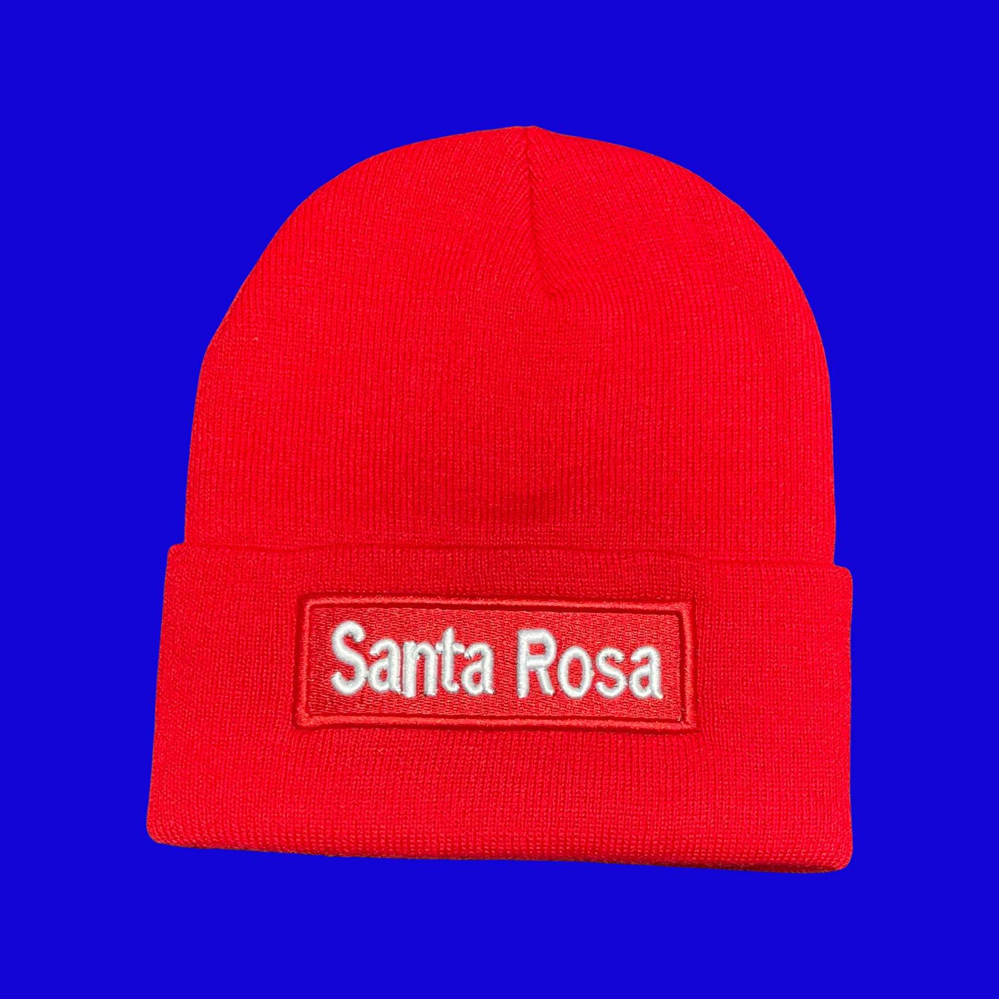 "Santa Rosa" Red, Red/White Lettering Embroidered, Beanie Cap